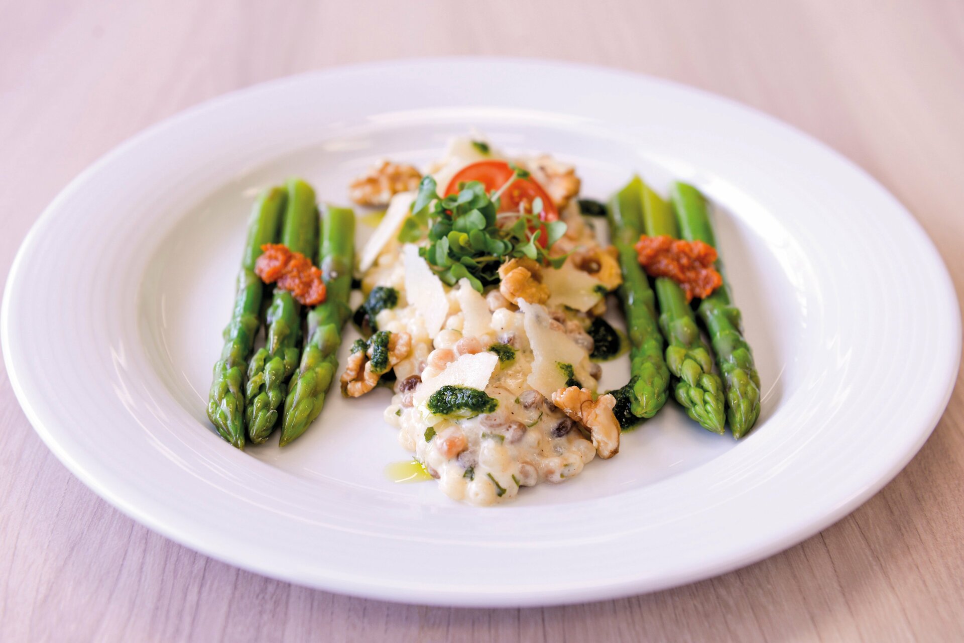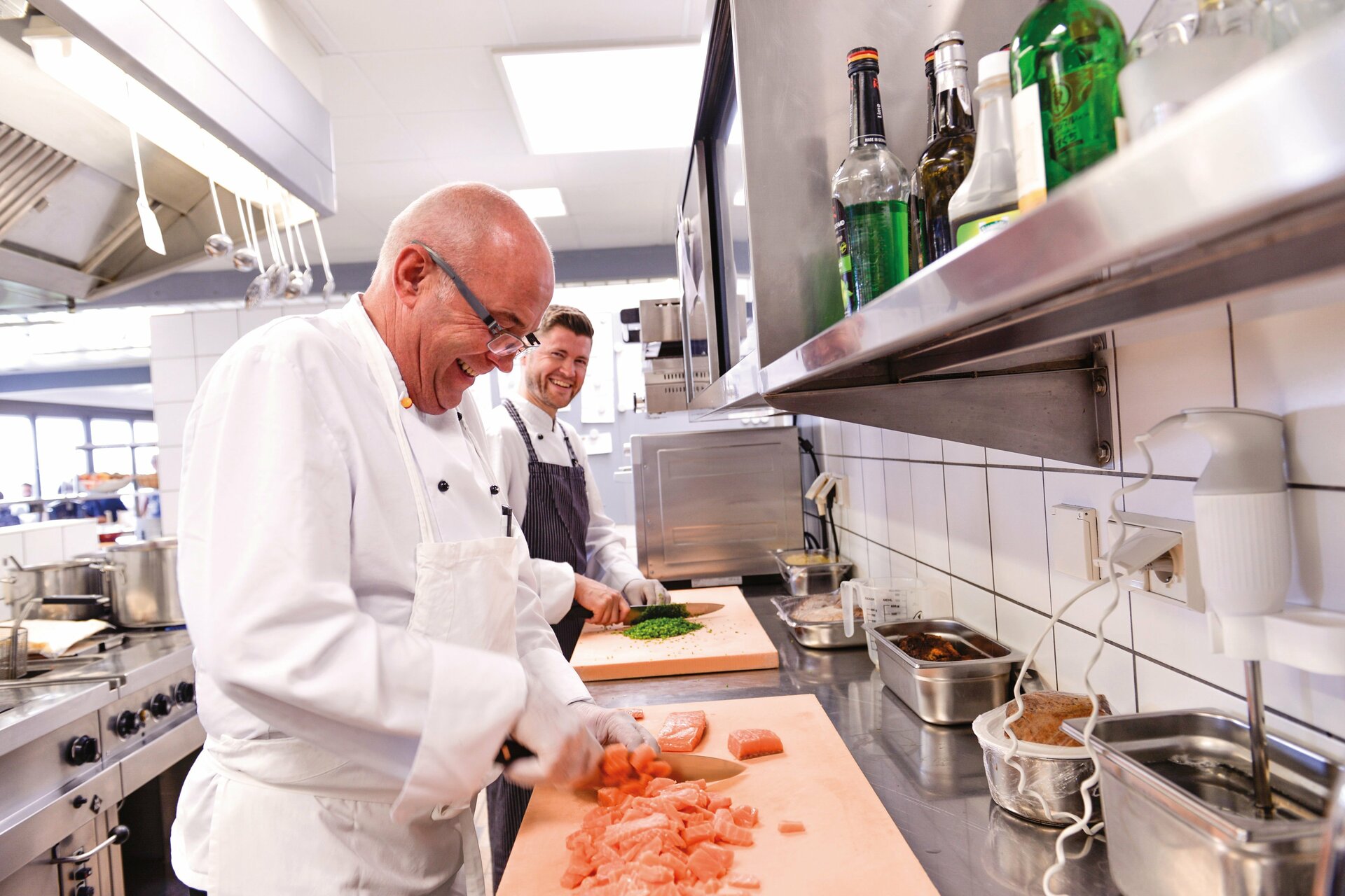 Gemeinsam mit seinem achtköpfigen Team bringt er im betriebseigenen Restaurant mit Blick auf die Allgäuer Alpen zur Frühstückszeit täglich etwa 250 Brotzeiten und mittags 300 Essen auf den Tisch. Dabei bietet er neben abwechslungsreichen und gesunden, frischen Gerichten auch immer etwas fürs Auge. „Mir ist wichtig, dass diese nicht nur gut schmecken und eine saisonale Auswahl bieten, sondern dass sie auch schön präsentiert werden, denn Genuss und Freude am Essen ist mir für meine Gäste das Wichtigste“, bekräftigt Hofer.