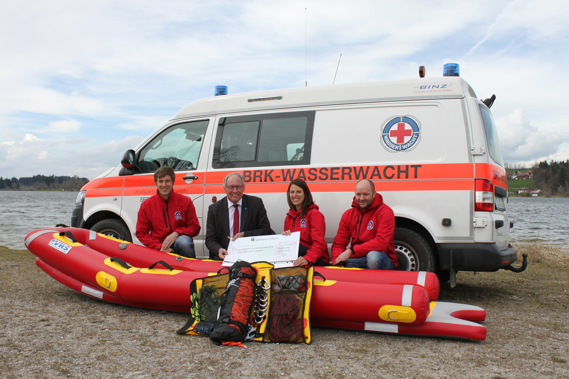 Haldenwang, 17. April 2018. Sage und schreibe 2.000 Stunden investieren die 40 aktiven Mitglieder der Wasserwacht Rottachtal jährlich in ihren ehrenamtlichen Wachdienst. Hinzu kommen ständige Aus- und Fortbildungen sowie Trainings, um im Ernstfall Wasserrettung und Erste Hilfe leisten zu können. Ihr Ziel: in Not geratene Menschen vor dem Ertrinken zu schützen. Für ihren Einsatz an Seen und Fließgewässern im gesamten Oberallgäu und dem Großteil des Ostallgäus benötigen die Rettungsteams der Wasserwacht eine entsprechende Ausrüstung. Diese wird zwar großteils vom Freistaat Bayern finanziert, doch um mit ihrer Schnelleinsatzgruppe, die das ganze Jahr über 24 Stunden täglich einsatzbereit ist, noch effektiver helfen zu können, wird daneben noch spezielles weiteres Equipment benötigt. Dieses wurde in der Vergangenheit teils bereits aus eigenen Mitteln des Bayerischen Roten Kreuzes finanziert.