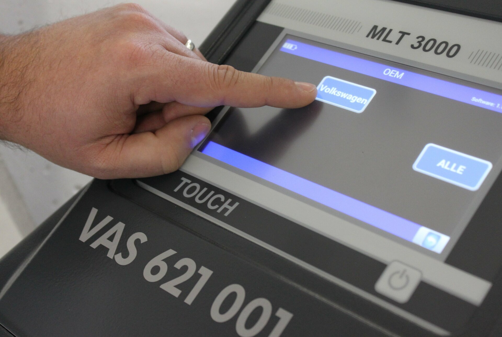 Haldenwang, 7. Januar 2019. Spezielle Anforderungen erfordern spezielle Lösungen. Aus diesem Grund entwickelte MAHA eine eigens auf den Bedarf der Volkswagen AG zugeschnittene Softwareversion für das bewährte Scheinwerfer-Einstellgerät MLT 3000. Mit der Ausführung für Volkswagen VAS 621 001 bietet der Werkstattausrüster somit aktuell als einziger Hersteller ein Produkt, welches die offizielle Freigabe von Volkswagen für den konzernweiten Einsatz in dessen Vertragswerkstätten erhalten hat. Nur mit diesem – die aktuellste VAS-Software vorausgesetzt – dürfen die Scheinwerfer des neuen Touareg eingestellt werden. Und das aus gutem Grund!