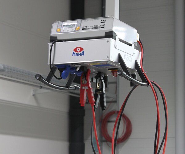 - 1 x 230 V Steckdose mit Schalter zur Steuerung des Ladecomputers