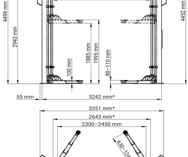 *Maß bezogen auf empfohlene Durchfahrbreite 2400 mm