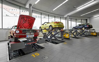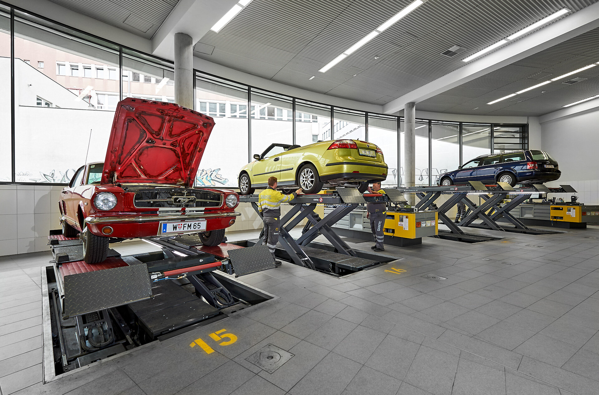 Am neuen Technik-Stützpunkt Erdberg kommen hochmoderne Prüfgeräte der Firma MAHA aus Haldenwang zum Einsatz. So wurde das neue Prüfzentrum mit fünf Bremsprüfständen, zwölf Scheren-Hebebühnen, einem Achsspieltester und einem Achsdämpfungsprüfstand aus dem Hause MAHA ausgerüstet. Die Bedienelemente der Bühnen wurden in die zentralen Versorgungsinseln („Working stations“) integriert. Mit dem neuen Zentralgebäude setzt der ÖAMTC in Sachen Architektur und Ausstattung neue Standards.