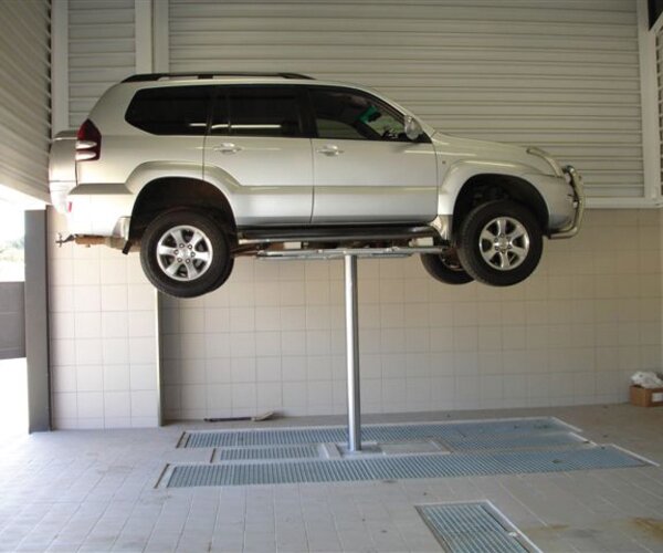 One-post inground lift with flat head supports,