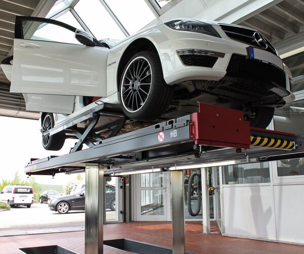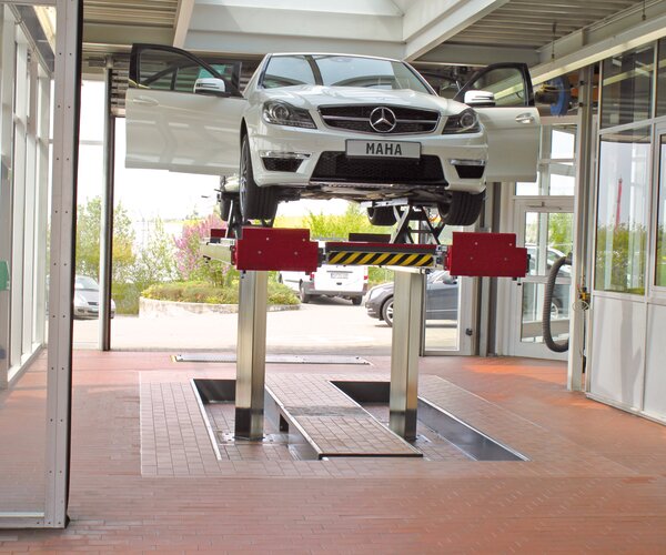 - Ample freedom of movement below the lifting platform thanks to the compact post-lifting unit and resulting optimum lighting below the raised vehicle